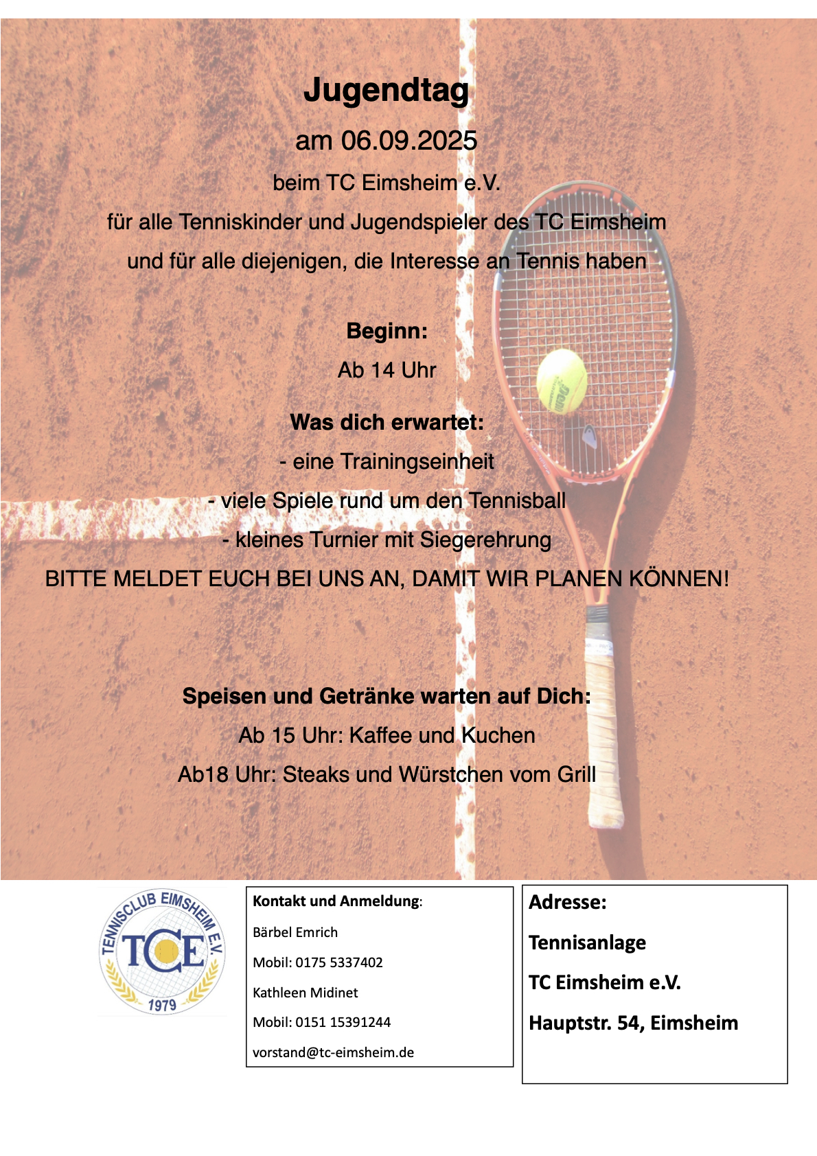 Jugendtag am 06.09.2025 3. August 2025 Jugend, Kurzmitteilungen, Tennisclub Eimsheim e.V., Vereinsnachrichten