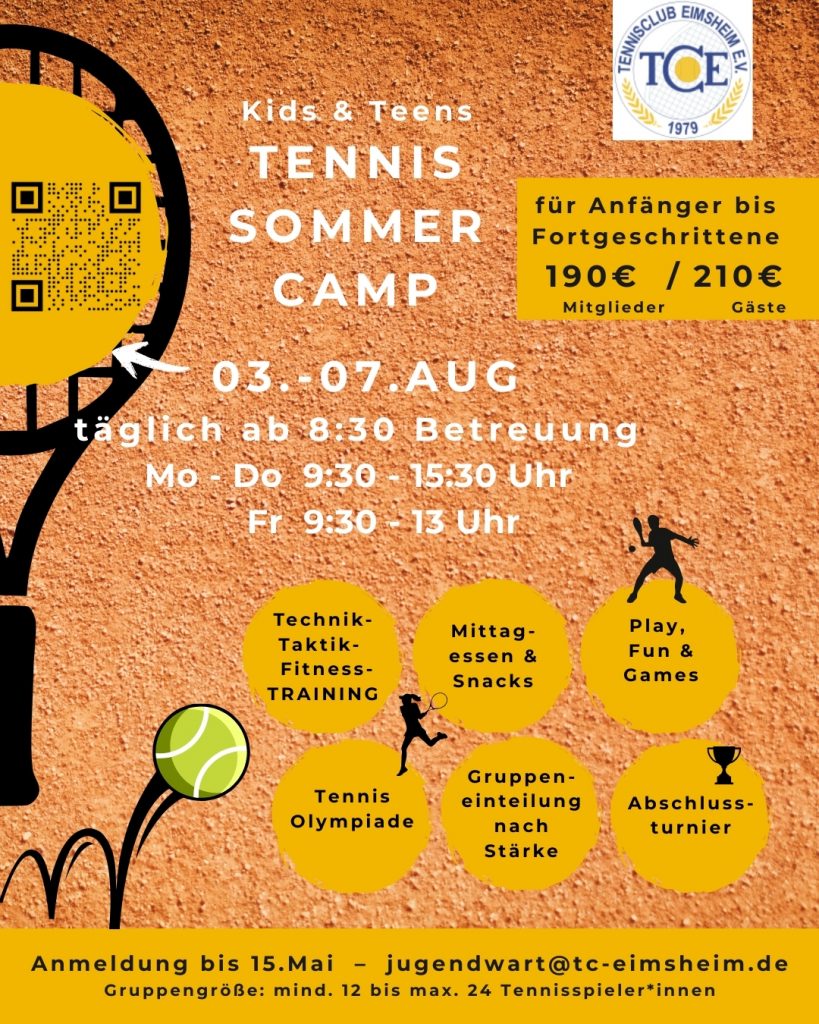 Sommer-Ferien-Camp für Kids und Teens 27. Februar 2026 Jugend, Kurzmitteilungen, Tennisclub Eimsheim e.V. Das Anmeldeformular findet ihr hier.